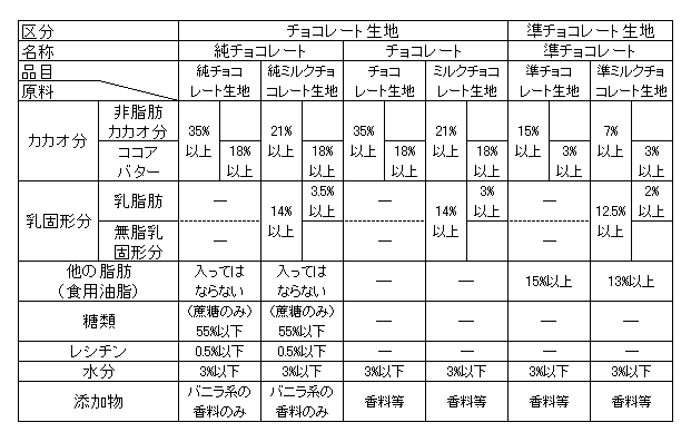 チョコレートの分類
